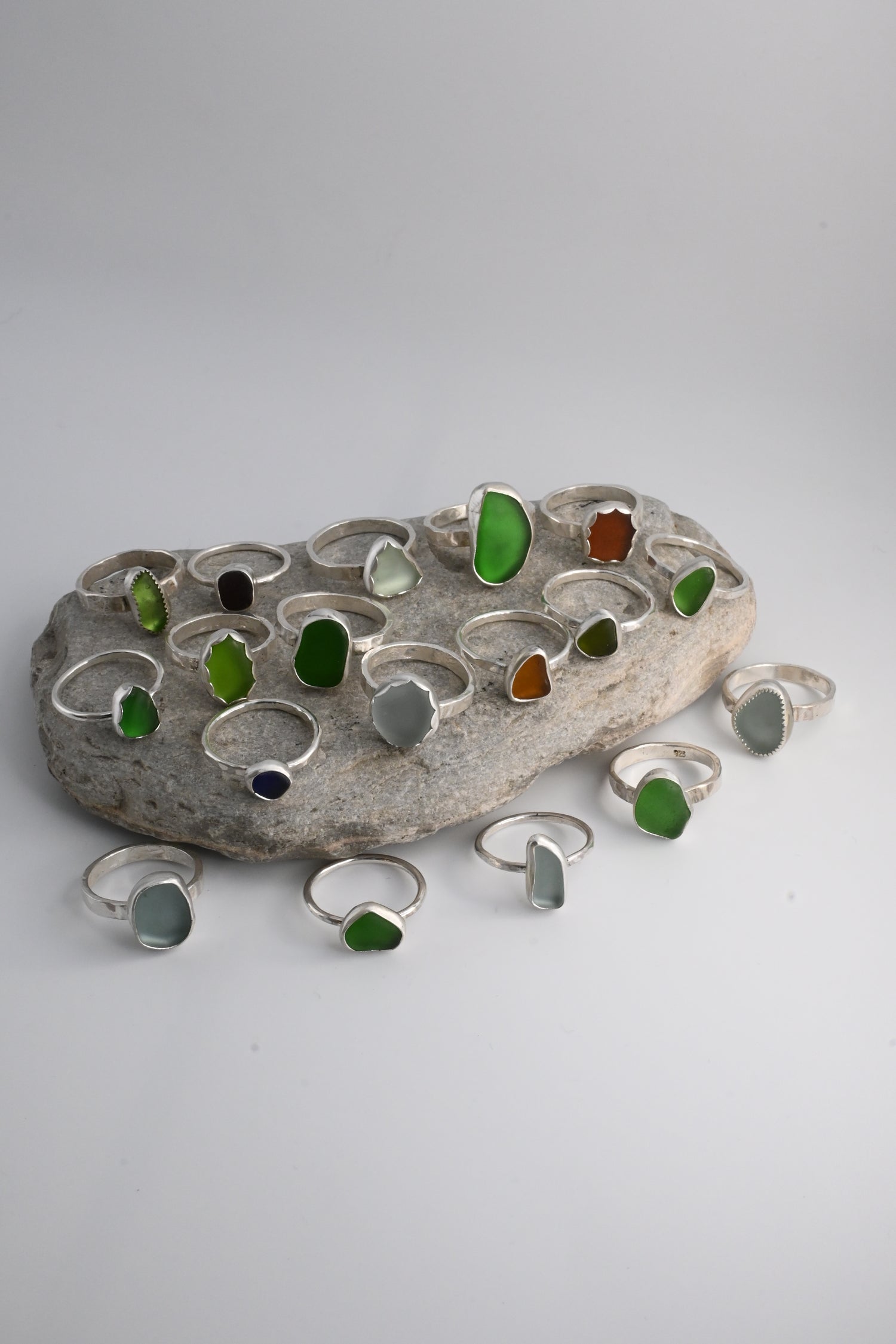 Diana specializes in making rings that feature sea glass, each one hand-picked and crafted from scratch using sterling silver through the art of metal-smithing. As a self-taught artisan, she has developed her skills over time, turning raw materials into unique pieces. Every ring reflects a combination of natural beauty and the care put into creating something special.