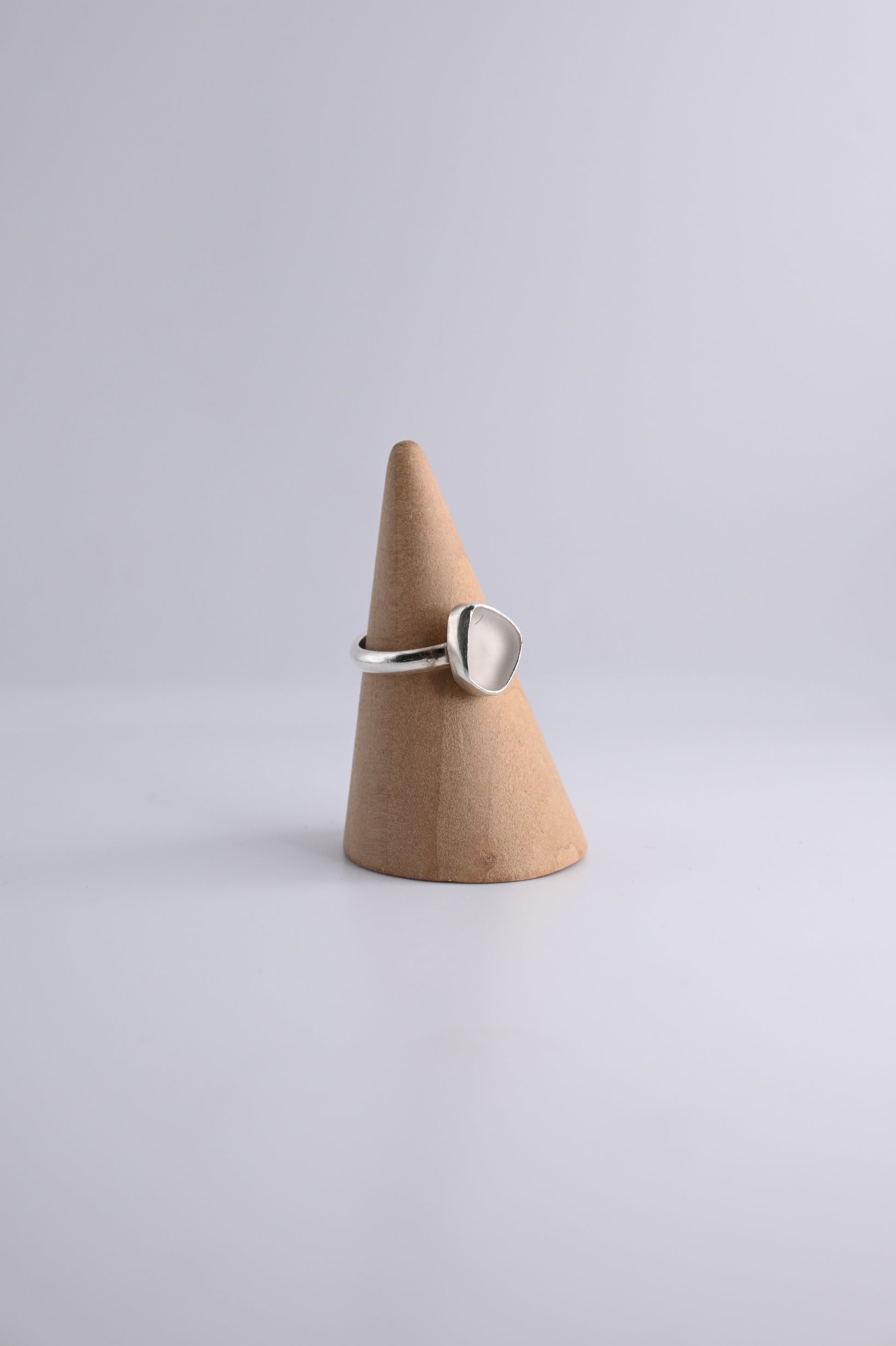 Handmade .925 sterling silver ring. Featuring handpicked, one-of-a-kind sea glass found somewhere along the Pacific Coast. Please note that each piece is crafted by hand not by a machine, so it will carry the subtle character and individuality that come with handmade work. Every ring is truly unique in its own way.