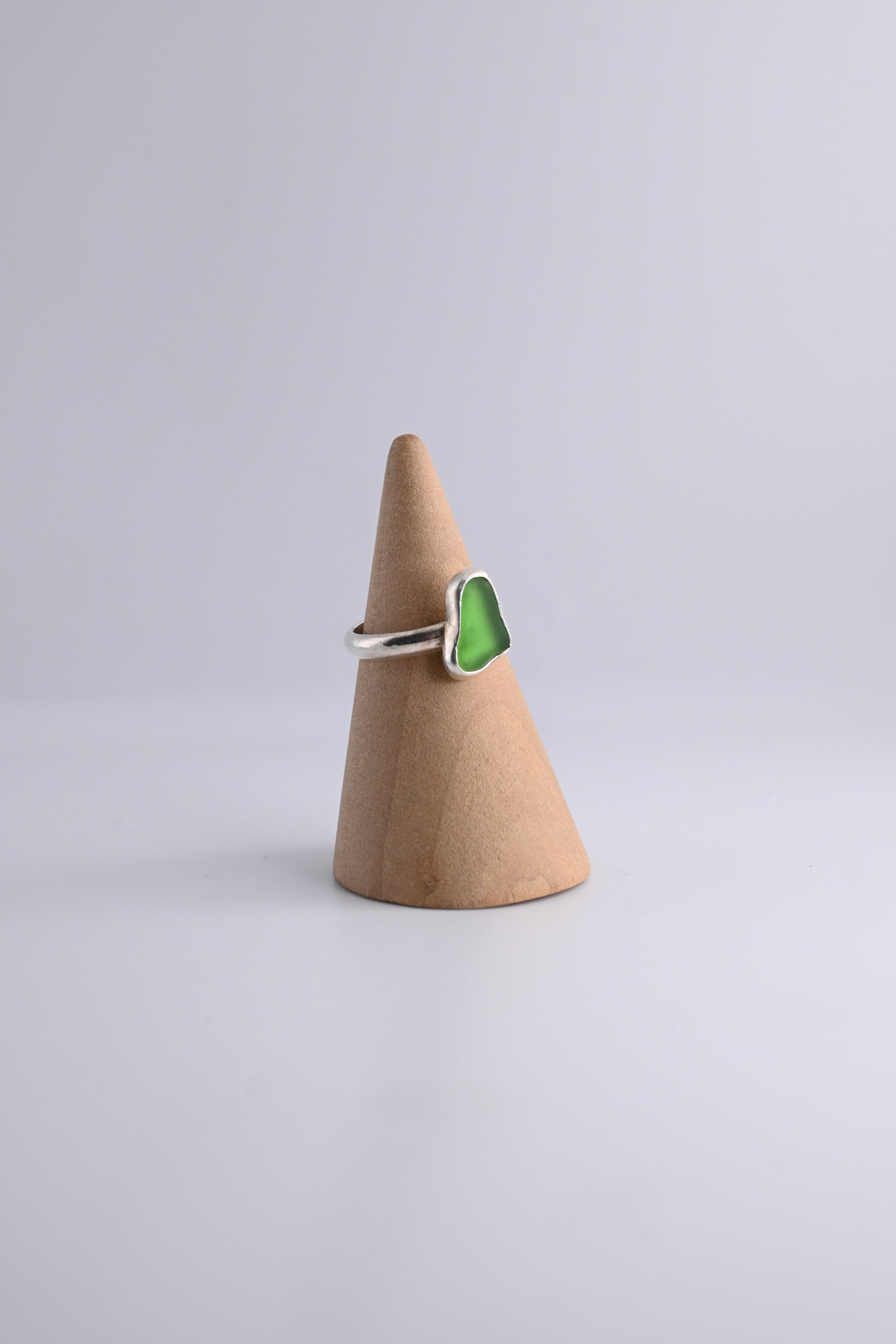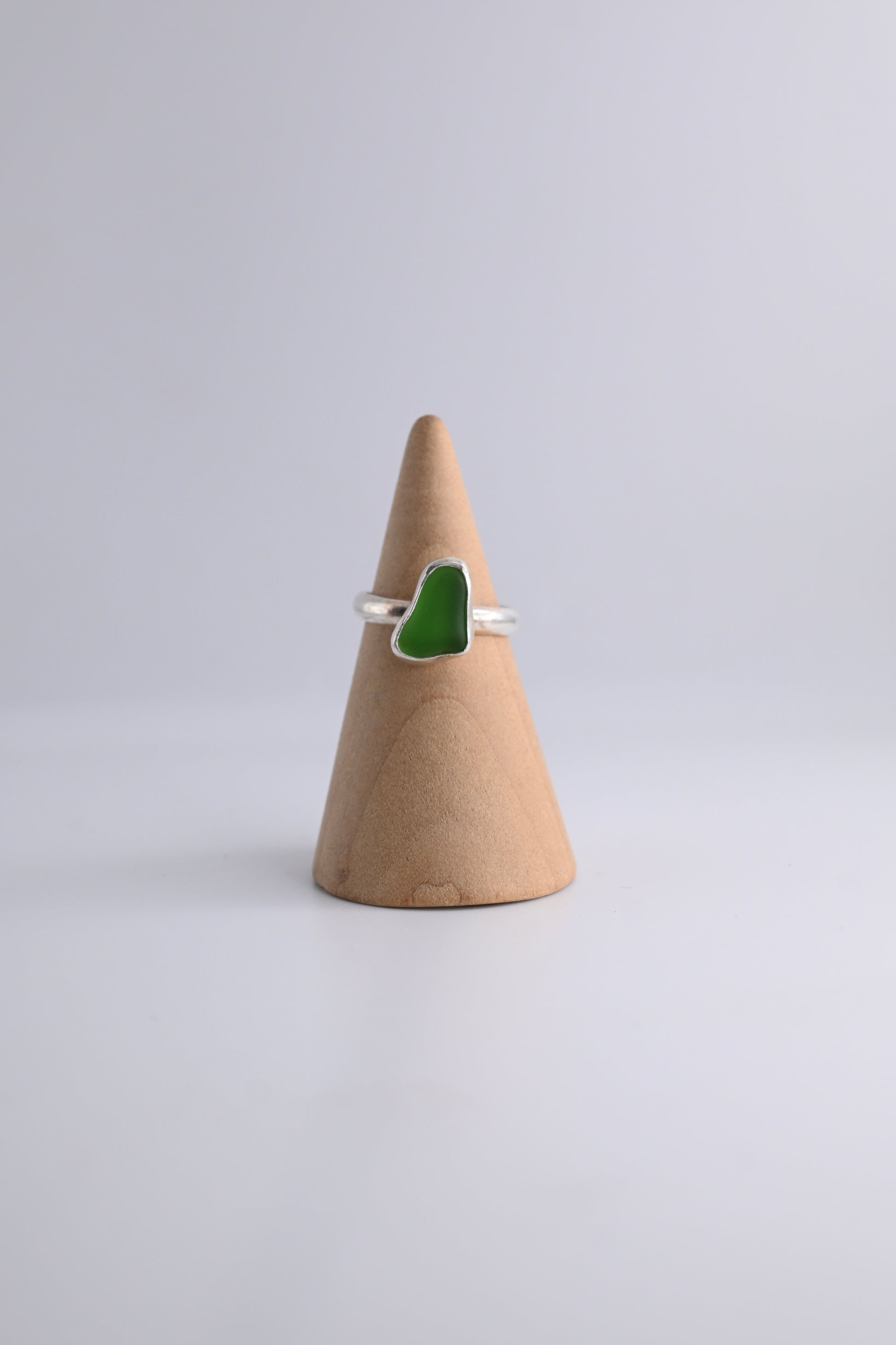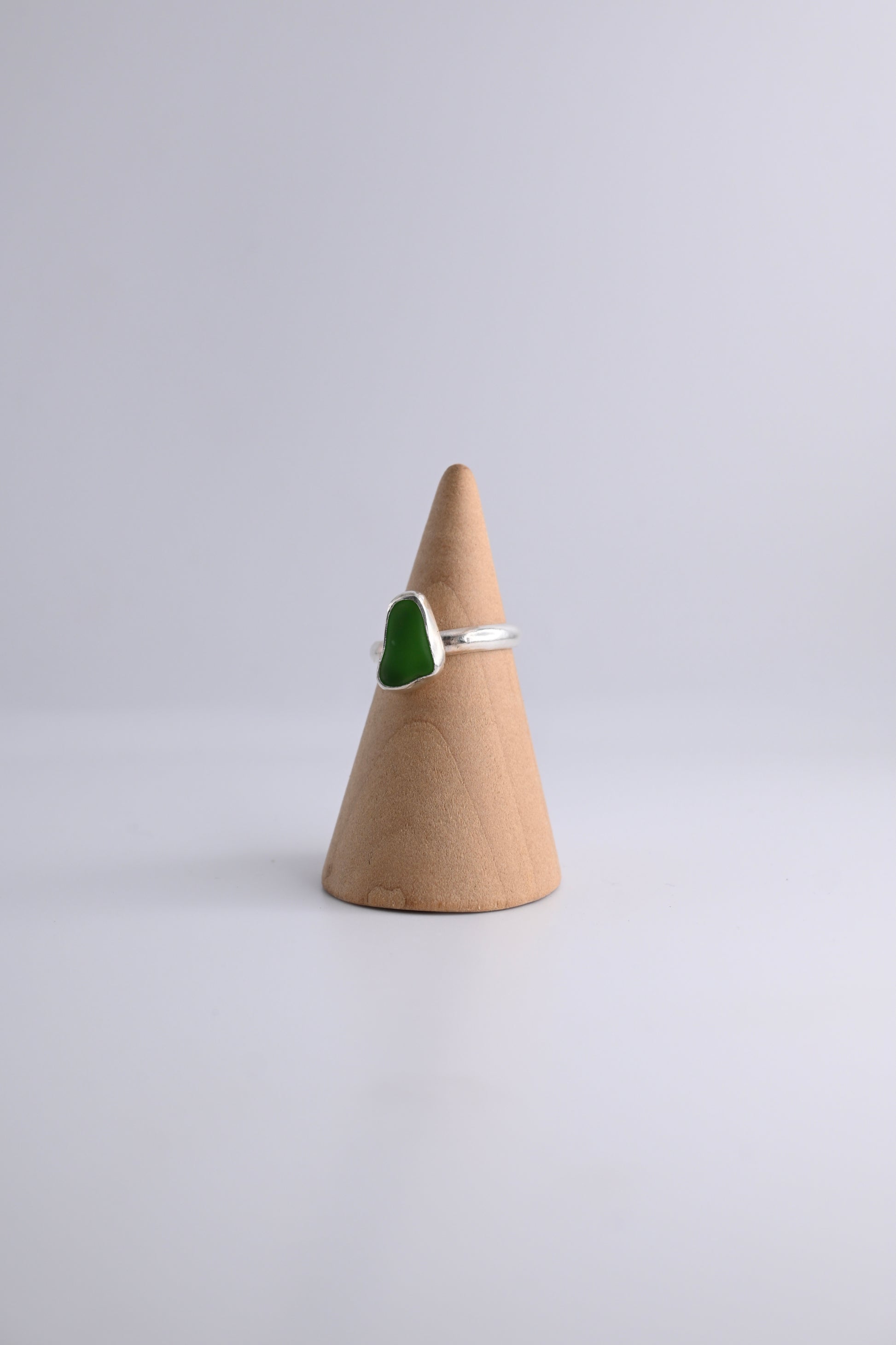 Handmade .925 sterling silver ring. Featuring handpicked, one-of-a-kind sea glass found somewhere along the Pacific Coast. Please note that each piece is crafted by hand not by a machine, so it will carry the subtle character and individuality that come with handmade work. Every ring is truly unique in its own way.