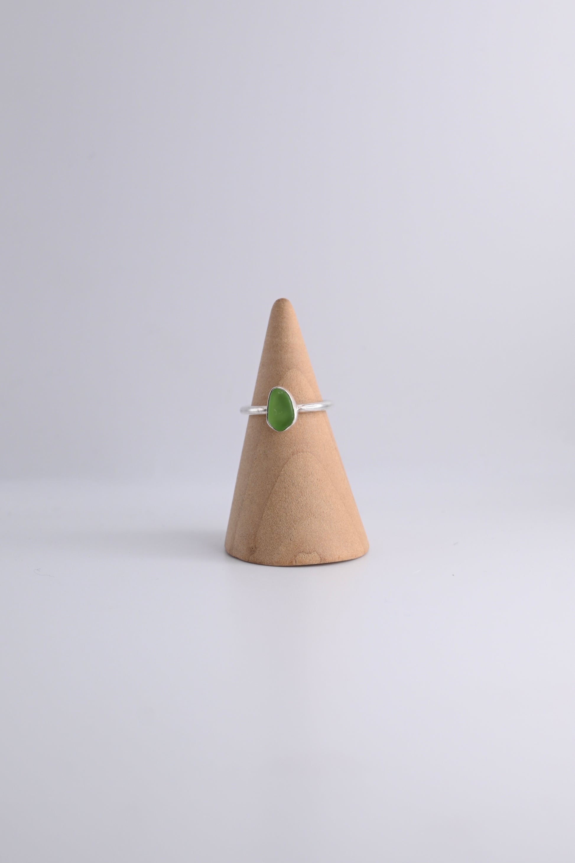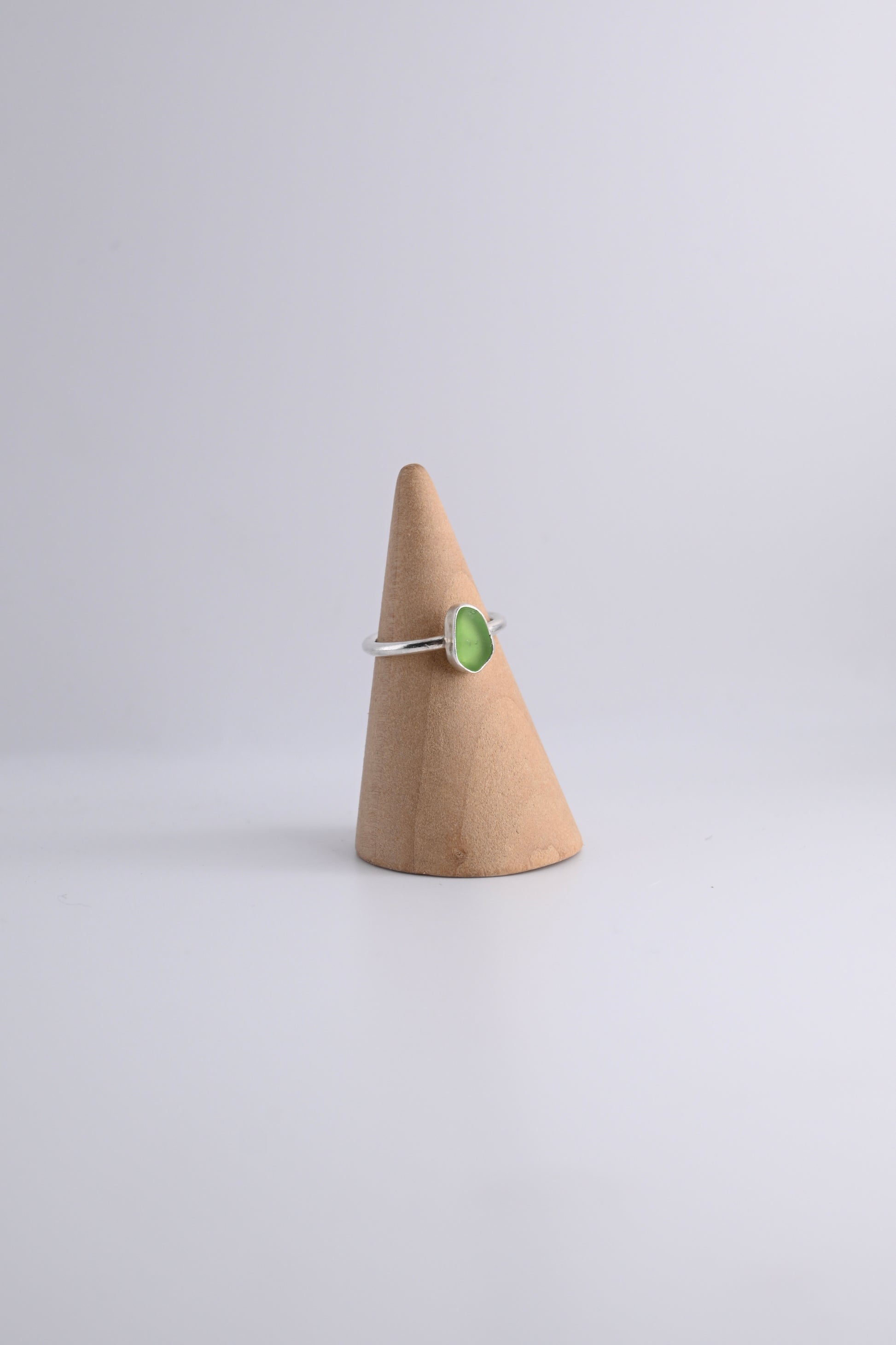 Handmade .925 sterling silver ring. Featuring handpicked, one-of-a-kind sea glass found somewhere along the Pacific Coast. Please note that each piece is crafted by hand not by a machine, so it will carry the subtle character and individuality that come with handmade work. Every ring is truly unique in its own way.
