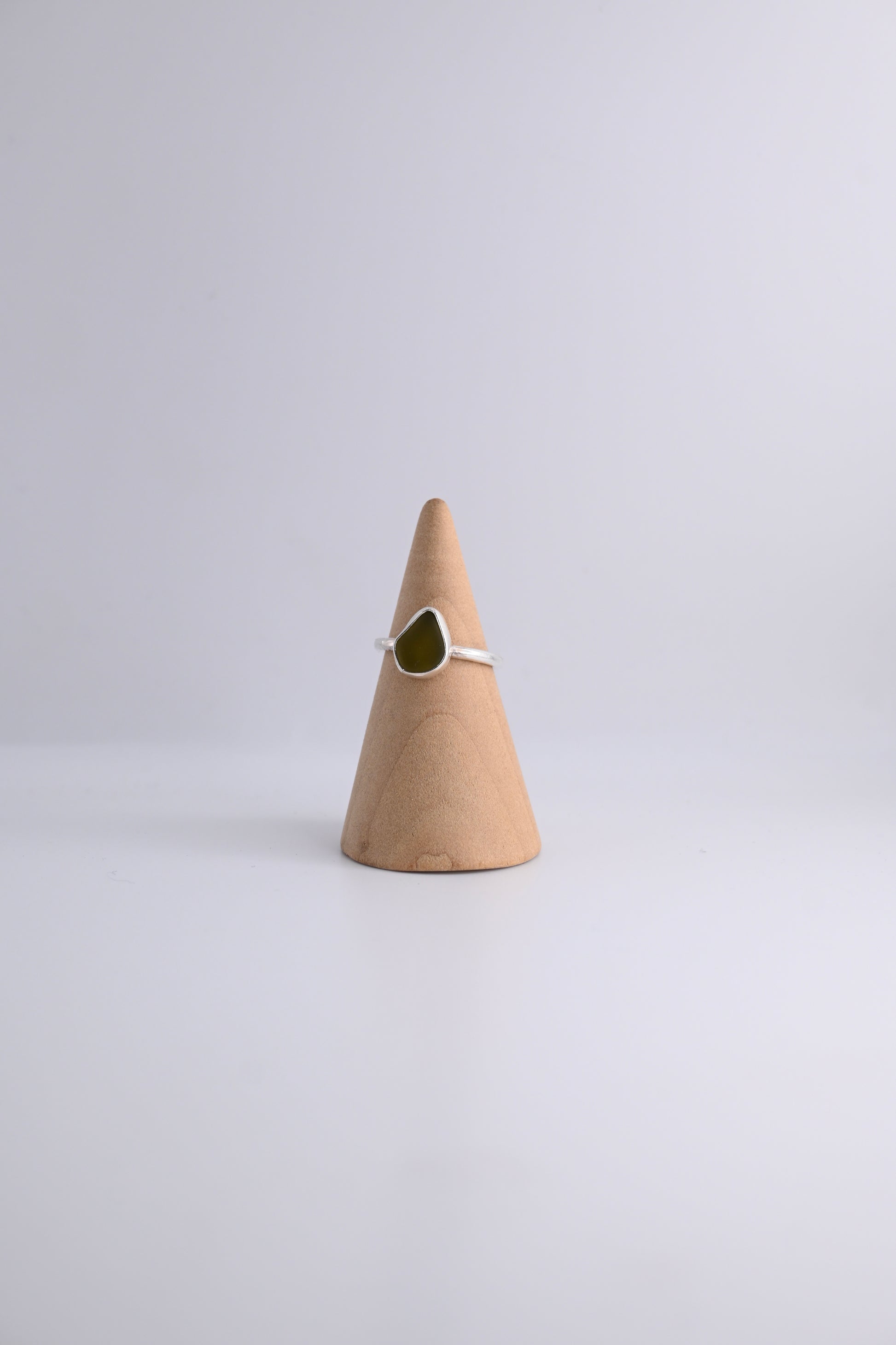 Handmade .925 sterling silver ring. Featuring handpicked, one-of-a-kind sea glass found somewhere along the Pacific Coast. Please note that each piece is crafted by hand not by a machine, so it will carry the subtle character and individuality that come with handmade work. Every ring is truly unique in its own way.