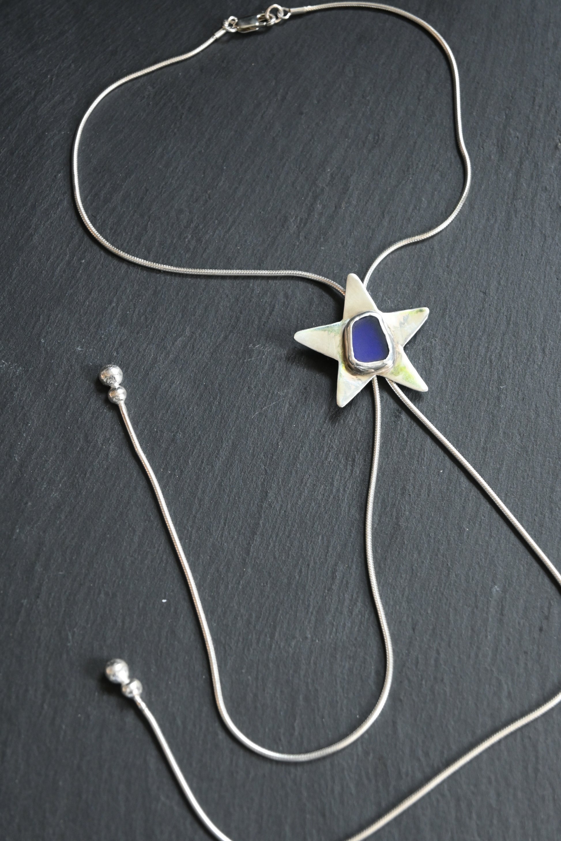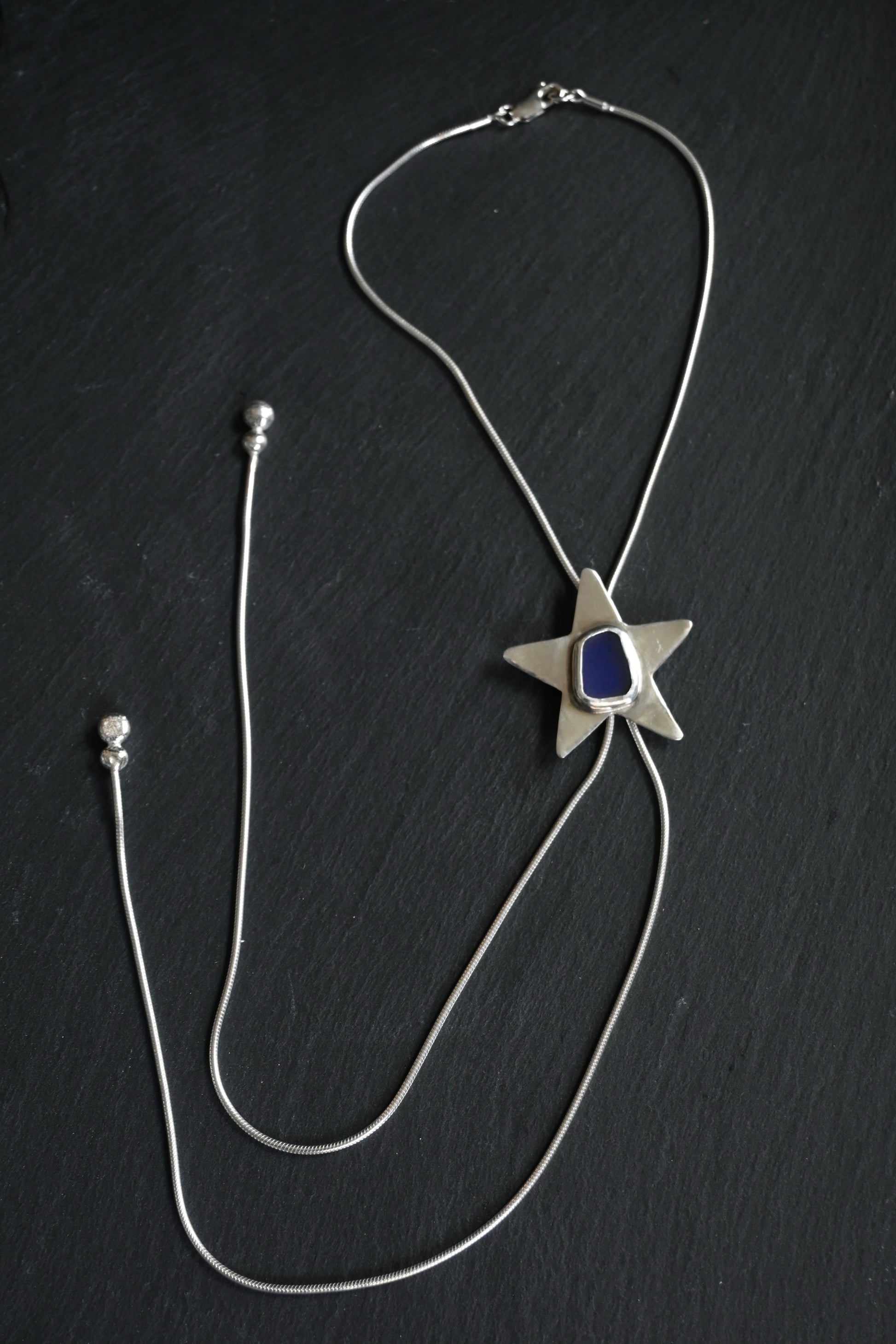 Handmade .925 sterling silver bolo tie. Handpicked, one-of-a-kind sea glass found along the Northern California coast. Please keep in mind that this piece is not made by a machine, therefore it will look handmade. Each bolo is one-of-a-kind and unique in its own way.