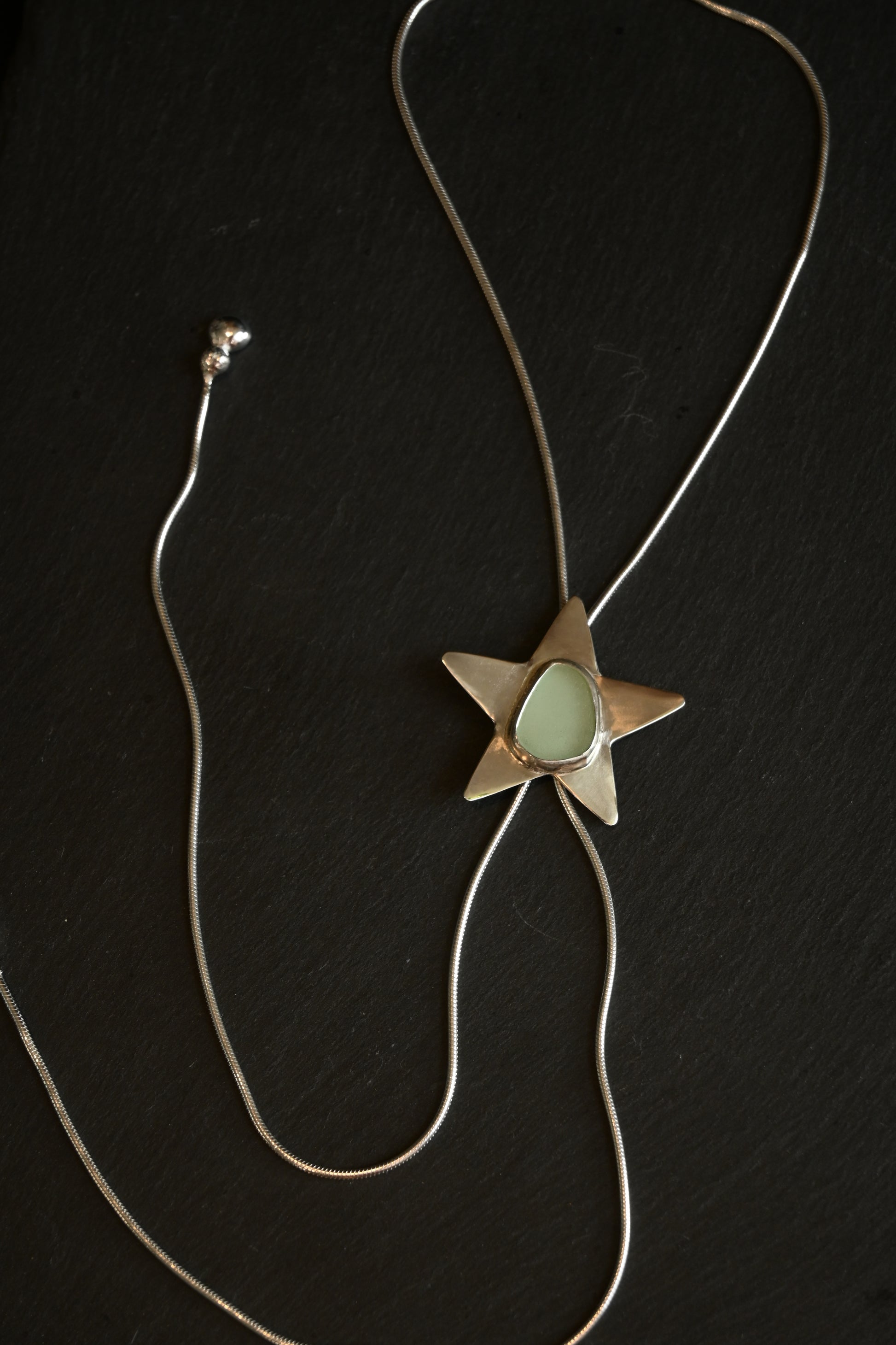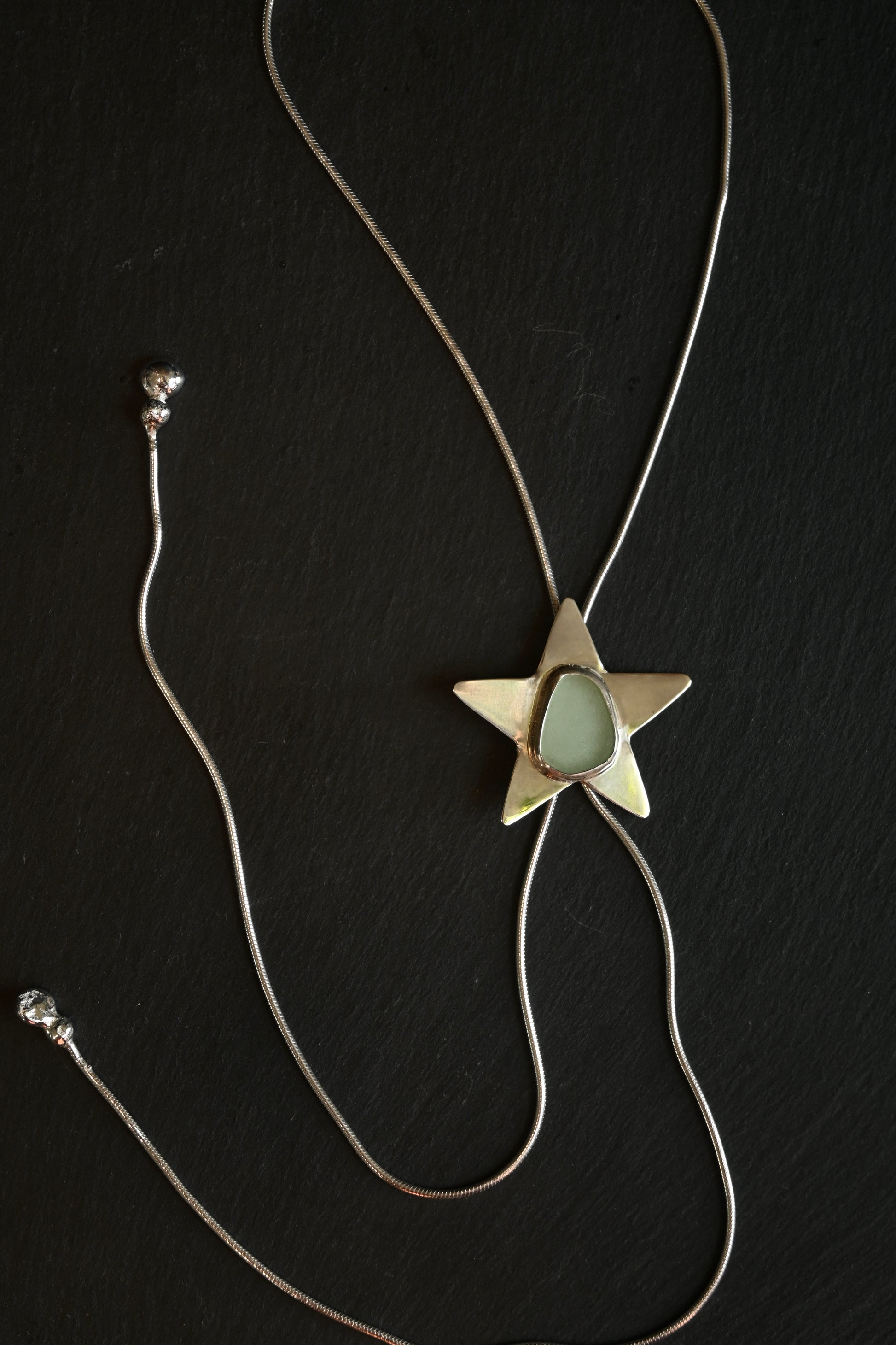 Handmade .925 sterling silver bolo tie. Handpicked, one-of-a-kind sea glass found along the Northern California coast. Please keep in mind that this piece is not made by a machine, therefore it will look handmade. Each bolo is one-of-a-kind and unique in its own way.
