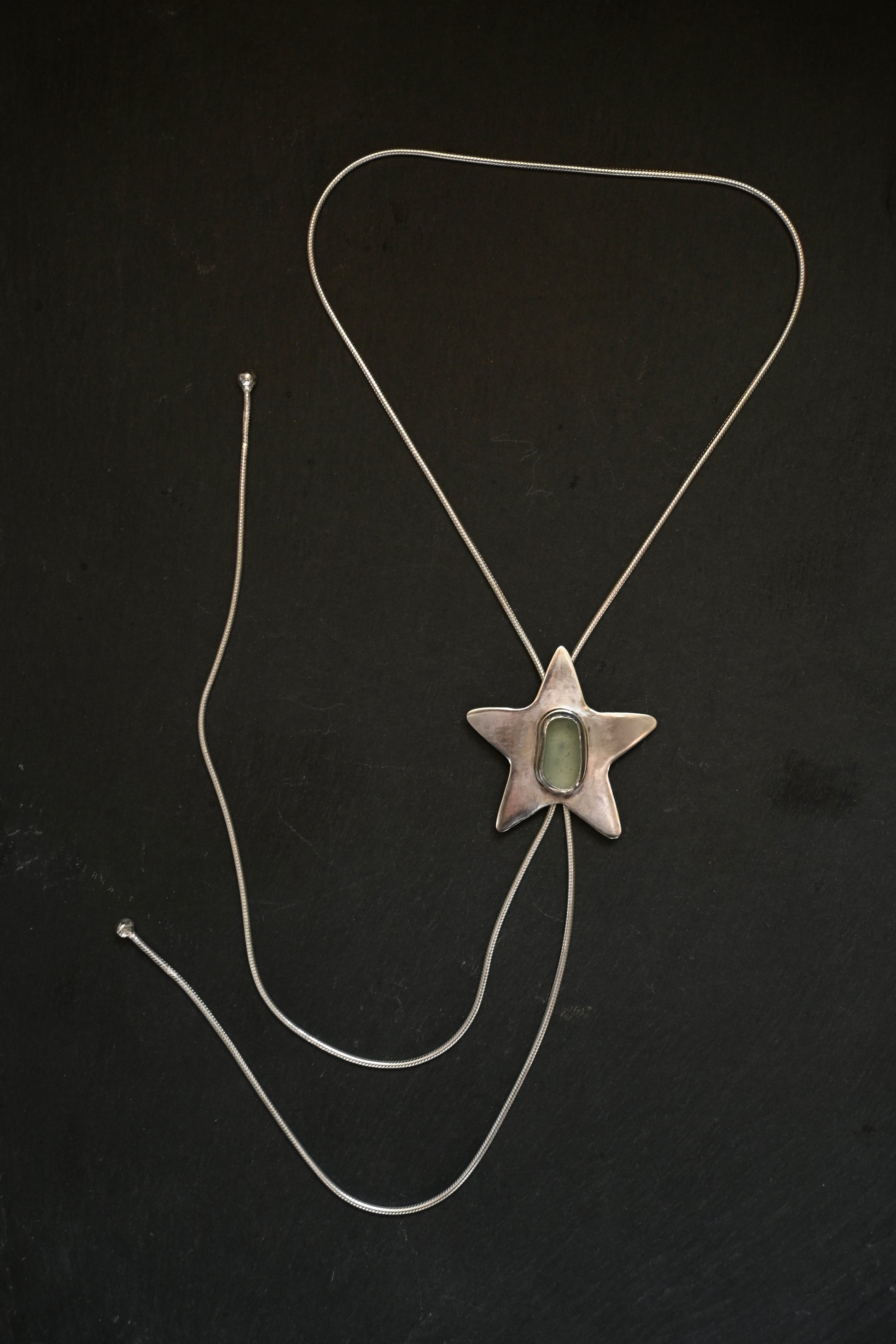 Handmade .925 sterling silver bolo tie. Handpicked, one-of-a-kind sea glass found along the Northern California coast. Please keep in mind that this piece is not made by a machine, therefore it will look handmade. Each bolo is one-of-a-kind and unique in its own way.